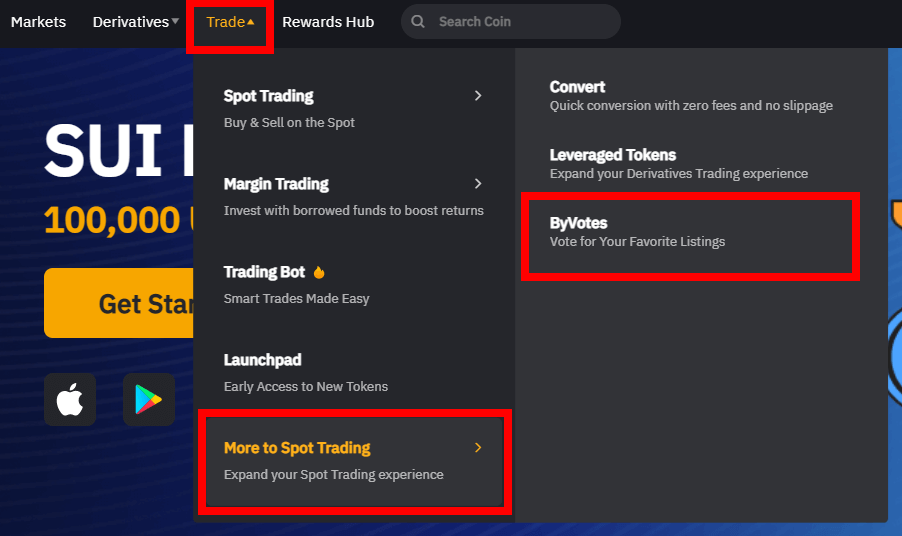 바이비트 사이트 상단 메뉴로 가서 Trade → ByBotes로 들어갑니다.